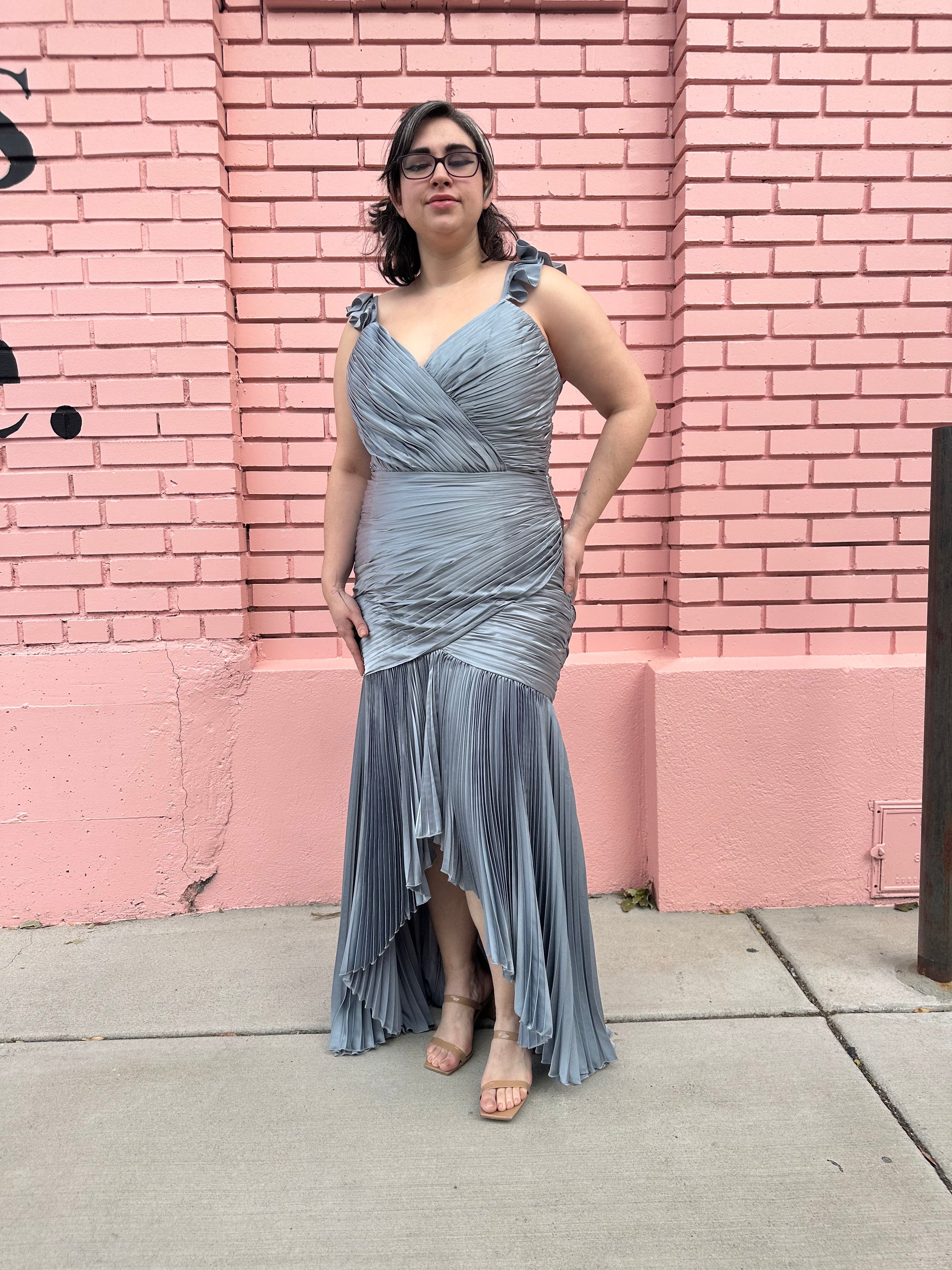 Mac Duggal Silver Blue Ruche Dress